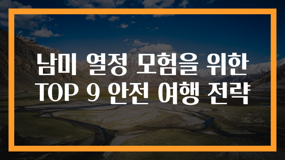 남미는 언제나 여행자들을 매혹시키는 다채로운 문화, 경이로운 자연 풍경, 그리고 풍부한 역사로 가득 찬 대륙입니다. 그러나, 모든 아름다움 속에는 여행자의 안전을 고려해야 하는 다양한 요소들도 존재합니다. 특히, 안전은 여행의 즐거움을 좌우할 수 있는 중요한 요소입니다. 이번 글에서는 남미를 모험적으로 탐험하고자 하는 분들을 위해 TOP 9 안전 여행 전략을 제안하고자 합니다. 이 전략들은 귀하의 여행 경험을 더욱 풍요롭게 하고, 불필요한 위험을 최소화하는 데 도움을 줄 것입니다.