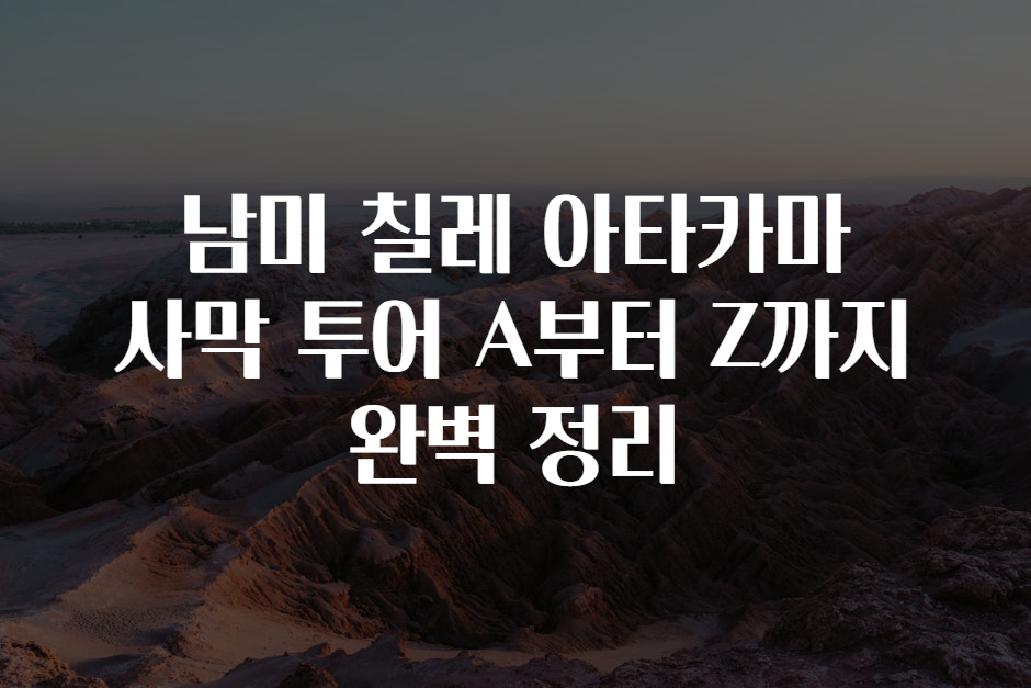 혹시 여러분은 찬란한 태양 아래 끝없이 펼쳐진 황량한 풍경과 별빛 가득한 밤하늘이 어우러진 관광지를 꿈꿔본 적 있으신가요? ✨🌌 남미 칠레의 자랑, 아타카마 사막은 세계에서 가장 마른 곳이자 동시에 가장 신비롭고 아름다운 곳이랍니다. 이번 포스팅에서는 아타카마 사막 투어를 계획하는 여러분을 위해 A부터 Z까지 꼼꼼하게 정리했어요! 준비됐나요? 🚗✈️🌍