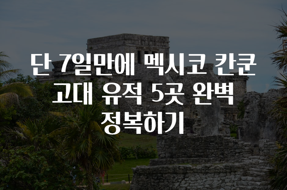 여행을 좋아하는 여러분, 세계적인 휴양지 칸쿤에서 고대 유적지를 탐험해볼 생각 해보신 적 있나요? 🌞 칸쿤은 아름다운 해변과 함께 마야 문명의 신비로운 유적들이 여러분을 기다리며, 단 7일만에 그 모든 것을 정복할 수 있습니다! 🏖️ 오늘은 여러분이 칸쿤에서 고대 유적지를 완벽하게 탐방할 수 있는 방법을 소개해 드릴게요. 그럼, 준비되셨나요? 🚀