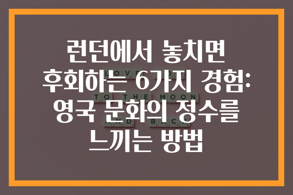 런던에서 놓치면 후회하는 6가지 경험: 영국 문화의 정수를 느끼는 방법