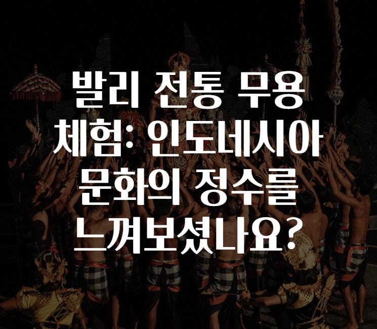 안녕하세요! 👋 혹시 여행지에서 현지 문화를 생생하게 체험하는 걸 좋아하시나요? ✈️🌏 오늘은 발리 🇮🇩의 대표 문화 체험인 ‘전통 무용’에 대해 자세히 알아보려고 해요! 이 글을 끝까지 읽으면, 발리의 매력을 한층 깊이 느끼고, 직접 참여하고 싶은 욕구가 샘솟을 거예요! 😍🩰✨