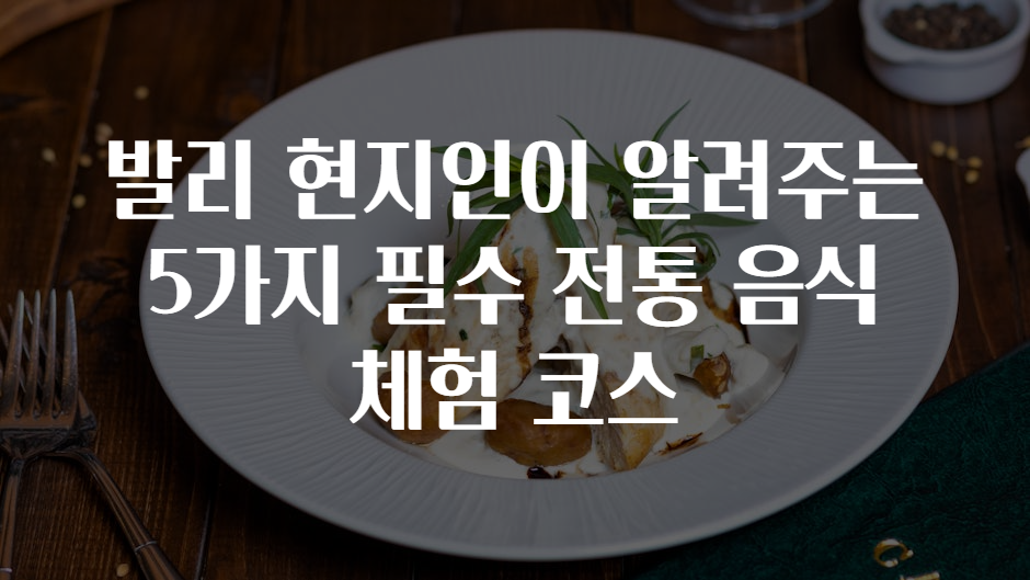 안녕하세요, 여러분! 발리는 아름다운 해변과 독특한 문화로 유명한 여행지 중 하나죠. 오늘은 🌏 발리 여행 중 절대 놓쳐서는 안 될 필수 전통 음식 5가지를 소개해 드리려고 해요. 여기서 소개하는 음식들은 발리에서만 느낄 수 있는 특별한 맛과 경험을 당신에게 선사할 거예요. 자, 이제 떠나볼까요?