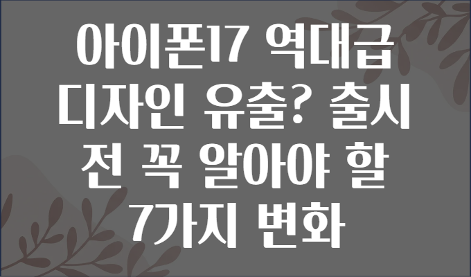 #아이폰17 #애플 #스마트폰출시 #디자인유출 #아이폰17변화 #최신아이폰 #모바일트렌드 #ios17 #아이폰액세서리 #디지털라이프 #스마트기기2024