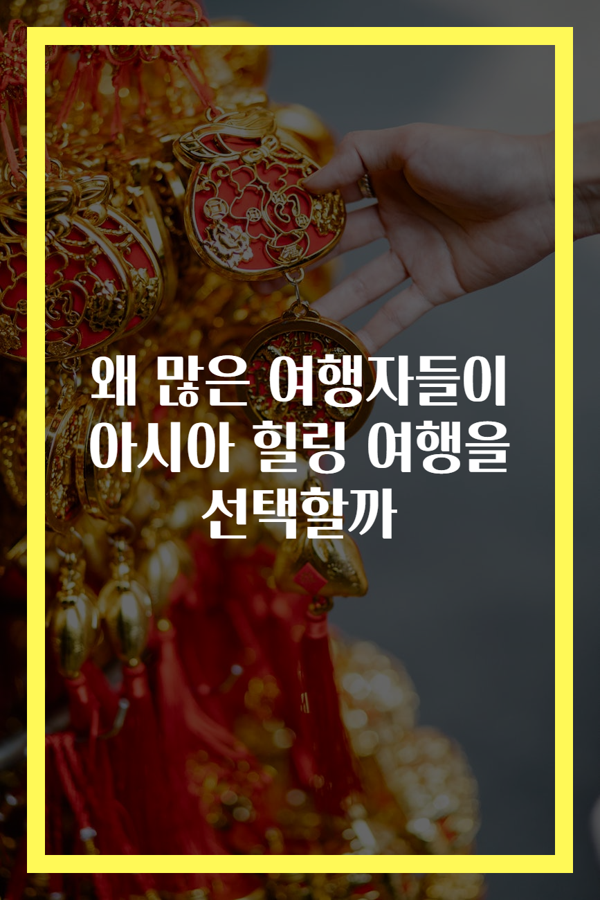 아시아 힐링 여행의 매력에 대해 알아보십시오. 전통 문화, 아름다운 자연, 건강한 음식, 개인화된 경험을 통해 평화를 찾는 방법을 안내합니다.
