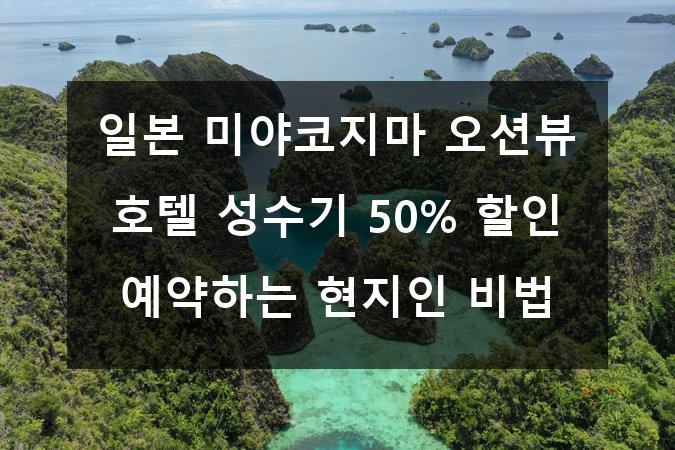 안녕하세요! 여러분, 혹시 일본의 숨은 보석 같은 휴양지 미야코지마에 대해 들어보셨나요? 🏝️ 푸른 바다와 하얀 모래사장이 어우러진 이곳은 일본 내에서도 자연 그대로의 아름다움을 느낄 수 있는 곳으로 손꼽힙니다. 그런데 가장 인기 있는 성수기 오션뷰 호텔을 50% 할인받아 예약할 수 있는 비법이 있다는 사실, 알고 계셨나요? 🤫 오늘은 미야코지마 여행을 계획 중이신 분들께 꼭 필요한 꿀팁과 현지인만 아는 할인 노하우를 모두 공개합니다! 🎯