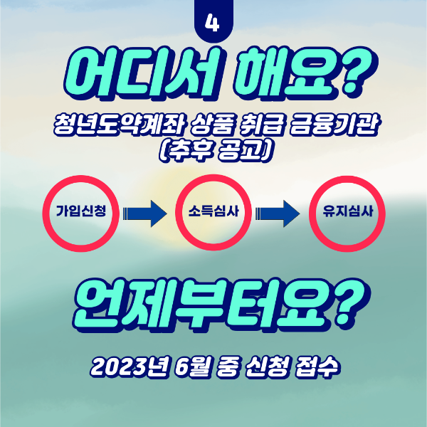 청년도약계좌는 2023년 6월부터 가입신청을 받아 비대면 심사를 실시예정이며,