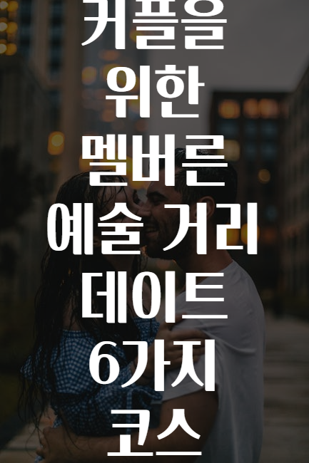 커플이 함께 보내는 시간이 얼마나 낭만적이고 소중한지 잘 아시죠? 🤗 그러므로, 멜버른의 예술 거리에서 특별한 데이트를 계획하는 것은 정말 좋은 아이디어입니다! 🌟 오늘은 멜버른의 다양한 예술 거리 코스를 소개할게요. 이곳에서 멋진 예술 작품과 숨겨진 보석 같은 장소들을 발견할 수 있으니 기대하세요! 📍