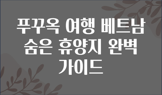 🌐 1. 푸꾸옥 여행 기초 정보 알아보기