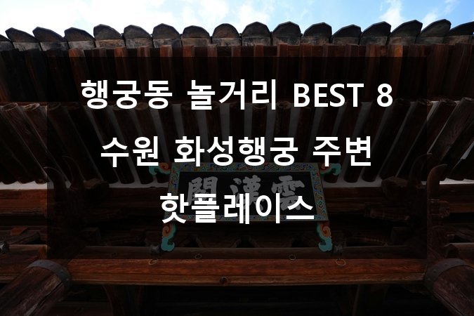안녕하세요! 혹시 수원에 가볼 만한 곳 찾고 계신가요? 🤔 특히 전통과 현대가 공존하는 행궁동 일대를 탐방하고 싶다면 이 글이 딱입니다! 🎯 수원 화성행궁 주변은 역사적인 명소뿐 아니라, 맛집, 카페, 쇼핑, 체험까지 다채로운 즐길 거리가 가득해요. 이번 포스팅에서는 행궁동에서 꼭 가봐야 할 놀거리 BEST 8을 소개합니다! 🏮🎉