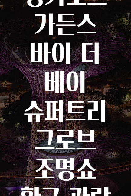 안녕하세요! 오늘은 싱가포르 여행에서 빼놓을 수 없는 명소, 가든스 바이 더 베이(Gardens by the Bay)의 하이라이트, 바로 슈퍼트리 그로브(Supertree Grove)의 환상적인 조명쇼를 제대로 즐기는 방법을 알려드리려고 해요. 🌴🌈