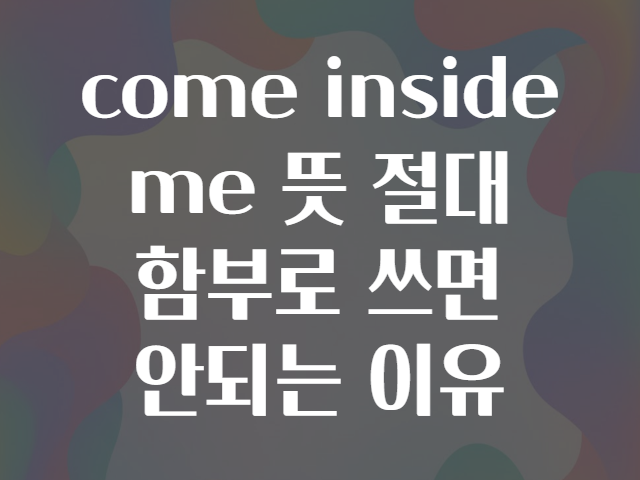 이번 글에서는 “come inside me”가 어떤 뜻인지, 왜 함부로 쓰면 안 되는지, 그리고 비슷한 상황에서 어떻게 적절하게 표현할 수 있는지에 대해 꼼꼼히 알려 드리겠습니다. 🙋♂️🙋♀️